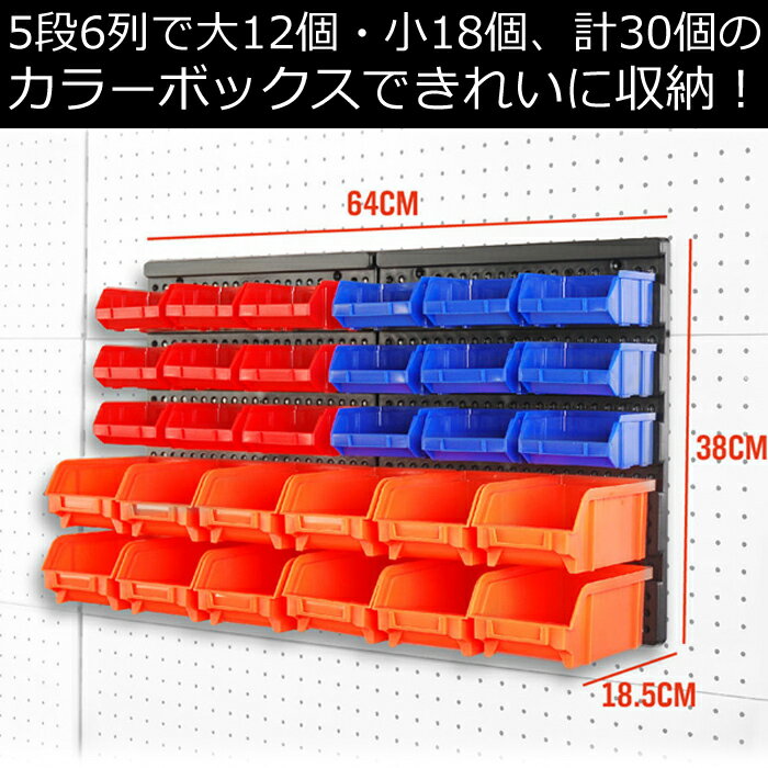 5段6列で大12個・小18個、計30個のカラーボックスできれいに収納小物を入れればインテリアとしてもバッチリ 組み立てははめ込み式なのでとってもカンタン! いろんな用途に使えます ・集めたコレクション品の仕分けに ・工具類などの小さな部品の小分け ・文具やデスクワーク周りの小物を整理に ・会社の社員さん用にそれぞれの箱に名前を振って事務的なやり取りに ・散らかったおもちゃを自分で簡単にお片付け 【商品詳細】 全体サイズ:(約)W64×H38×D18.5cmトータル重量:2kg■引き出しサイズ 赤(外寸):約W9.7×H5×D9.2cm赤(内寸):約W8.4×H4.4×D7.7cm青(外寸):約W9.7×H5×D9.2cm 青(内寸):約W8.4×H4.4×D7.7cm橙(外寸):約W10.1×H7×D16.3cm橙(内寸):約W8.5×H6.8×D14.2cm ■個別重量赤:(約)31g青:(約)31g橙:(約)69g ※設置の際は壁面の強度をお確かめの上、ご使用ください※落下・転倒につながる恐れがございますので、必ず水平になるようネジを取り付けてください。