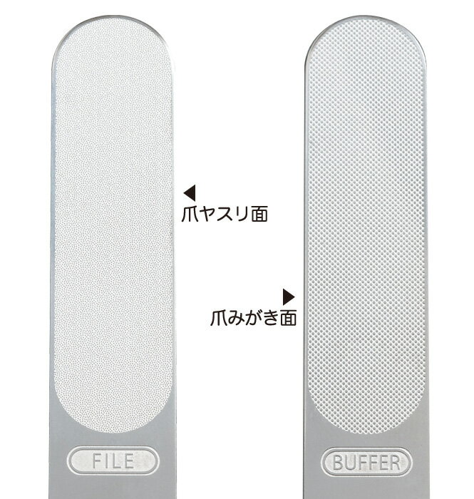 爪の表面を磨く 「File」と書かれている面を使用して爪の表面の凸凹を整え、「Buffer」と書かれている面を使用して仕上げます。